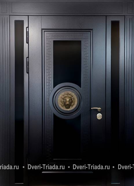 Входная остекленная группа с терморазрывом и декором «лев» (панели МДФ с фрезеровкой) Арт-422